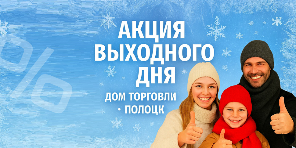 Скидка выходного дня ![]() - минус 10% розничной цены на кастрюли, наборы кастрюль - минус 10% розничной цены на утюги НаРодныя ТАВАРЫ, НаВагодняя ЗНІЖКА ССЫЛКА -> ЖМИ СЮДА Совместные акции с поставщиками ССЫЛКА -> ЖМИ СЮДА 1. Действие акции не распространяется - на товары стоимостью до 7 руб. за 1 единицу; - на товары, участвующие в иных акциях; - на товары, по которым ранее проведена сезонная уценка, уценка по иным основаниям; - на товары, входящие в Перечень регулируемых потребительских товаров (утв. постановлением СовМина 19.10.2022 №713); - при продаже по безналичному расчету юридическим лицам; - при продаже физическим лицам по кредитным продуктам банков-партнеров. 2. Карта постоянного покупателя в рамках данной акции является только накопительной. 3. Акционные товары уточняйте в местах продаж. Телефоны для справок: +375(214)43-54-48, +375(33)317-72-87 |
