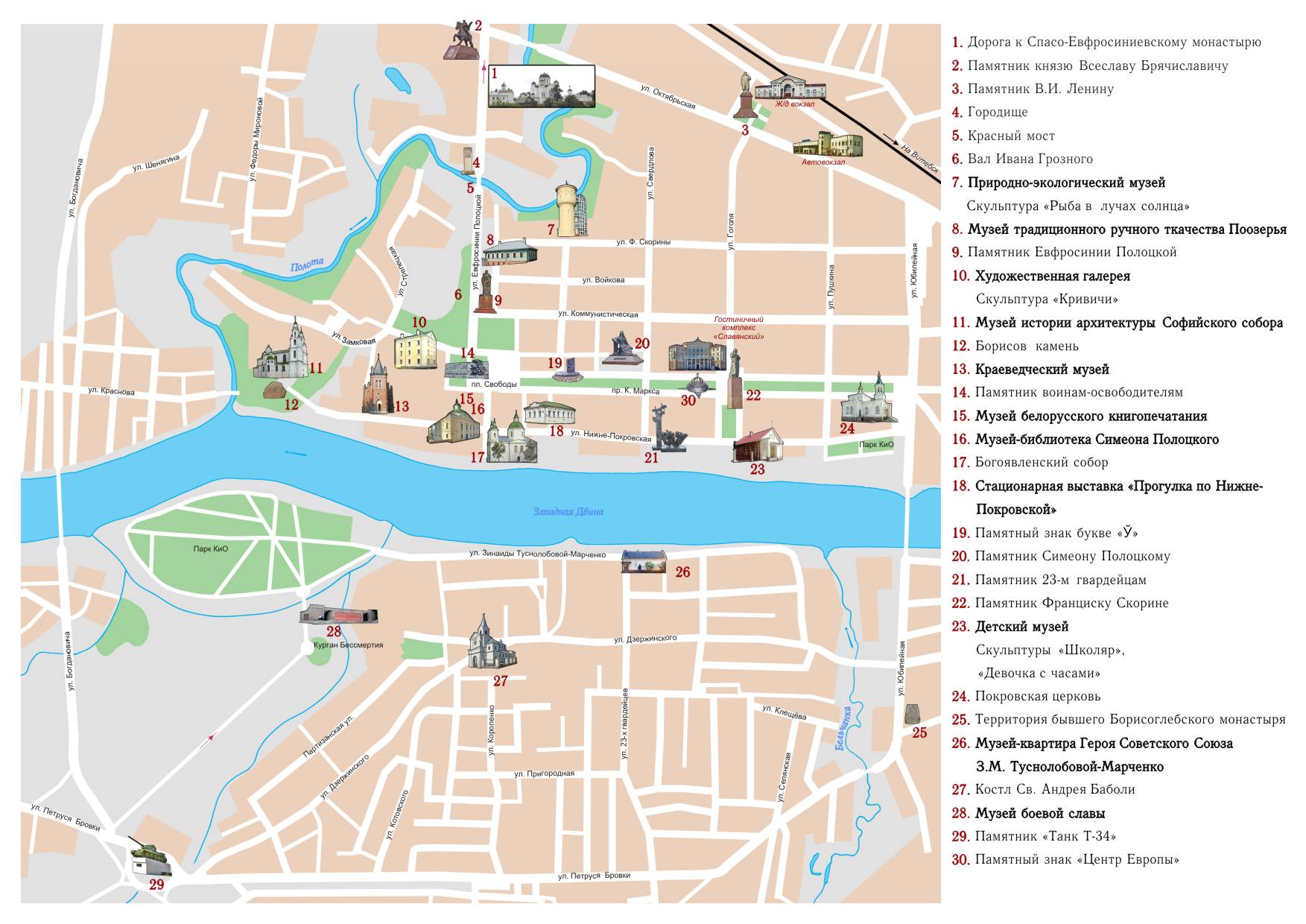 ПОЛОЦК - КАРТА - ПУТЕВОДИТЕЛЬ по Центральной части Полоцка ПОЛОЦК - КАРТА - ПУТЕВОДИТЕЛЬ для туристов ПОЛОЦК - КАРТА - ПУТЕВОДИТЕЛЬ расположения памятников |